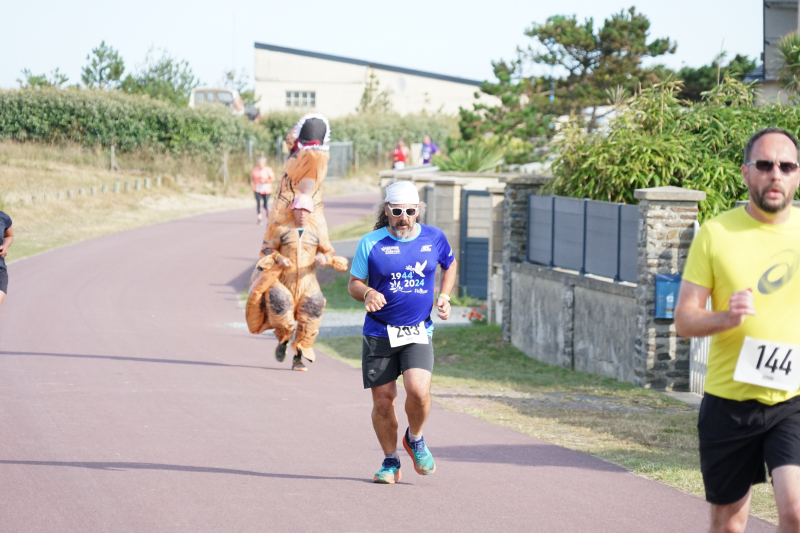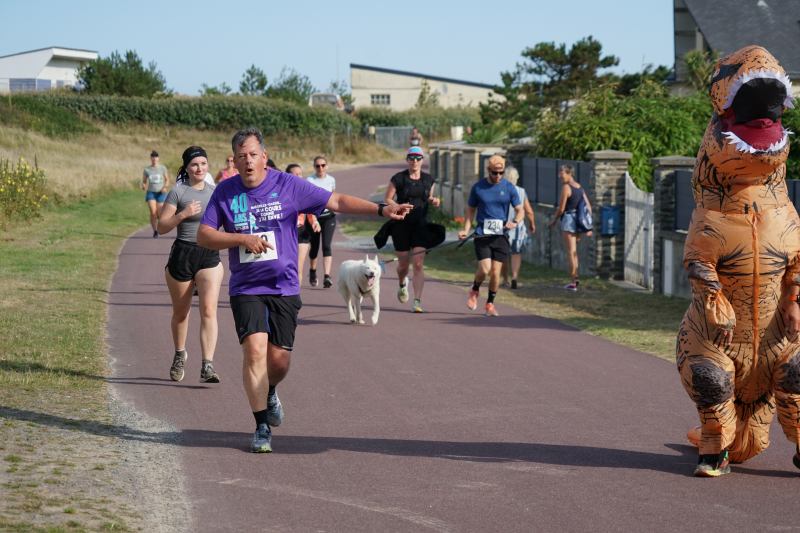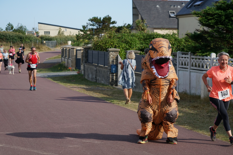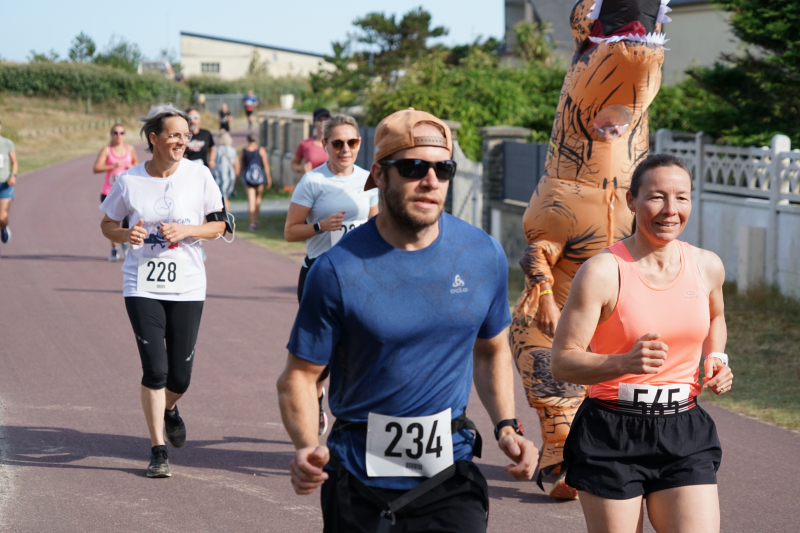 Ce dimanche 28 juillet, les Foulées Brettevillaises se sont déroulées sous un magnifique soleil, un vent faible. Plus de 120 participants, dont un Tyrannosaure Rex, sont venus s’affronter sur le parcours désormais connu des habitués.